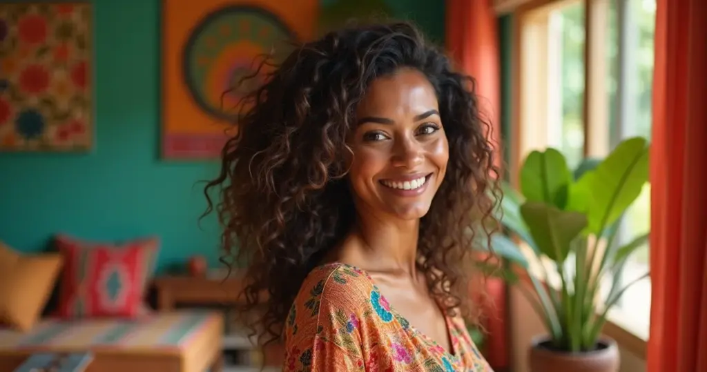 Cores quentes que realçam a profundidade dos cachos.